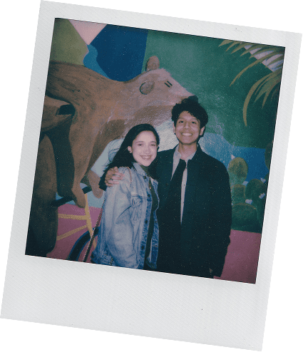 Maddie and Julian met in a college speech class and bonded over illustration and scary movies. Their friendship deepened through late nights at the animation building, early morning jogs, and a memorable day in Paris, leading to their relationship back in 2018.